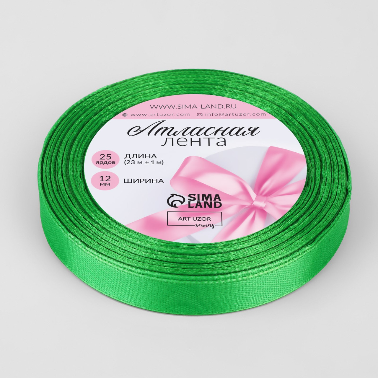 Лента атласная 12 мм цвет зеленый 19 в рулоне 23м